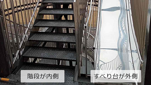 ・本商品は「日本消防設備安全センター」による型式評定品です。・折返し階段の外側に避難用すべり台が設置されており、要配慮者や介助者にも 優しい商品です。・避難用すべり台に車いす対応型やアシスト装置の取付がお勧めです。